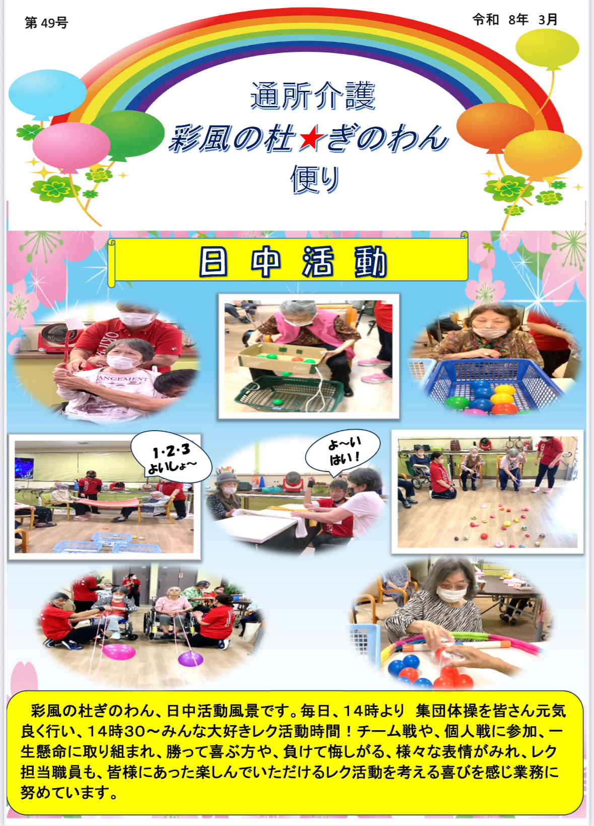 通所介護彩風の杜ぎのわん便り(R8.3月)広報誌