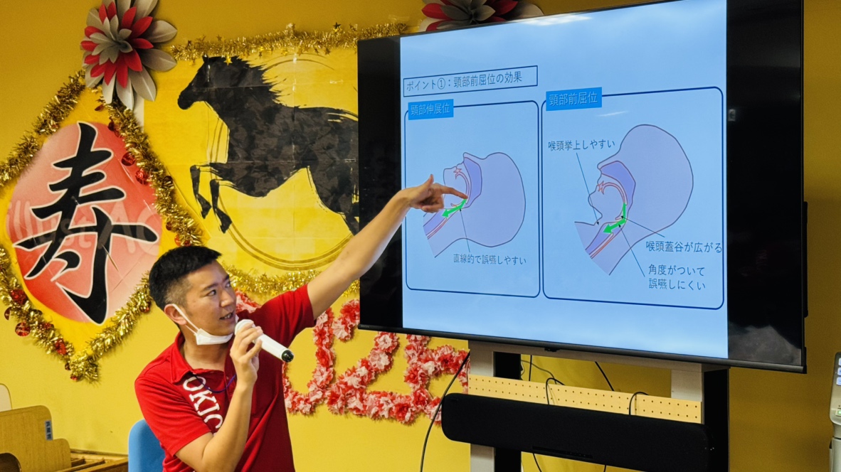 単に食物を運ぶだけでなく、積極的な声かけやポジショニングなどの働きかけで誤嚥を防ぐことができます。また、経管栄養の方の特徴や唾液の課題を学び、経管栄養の方への口腔ケアが誤嚥性肺炎を防ぐことも理解しました。